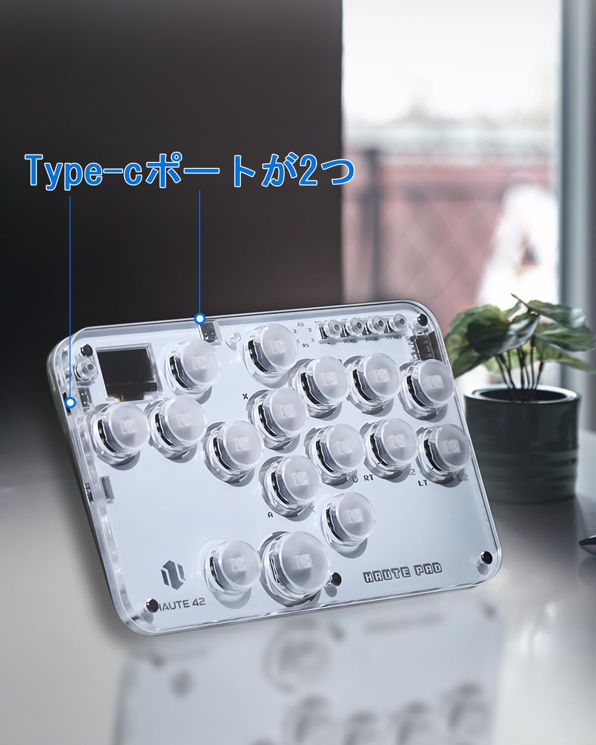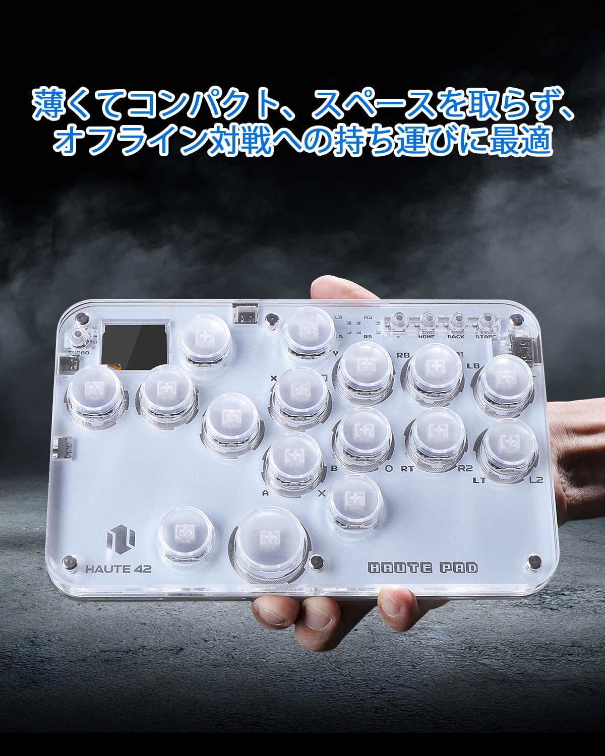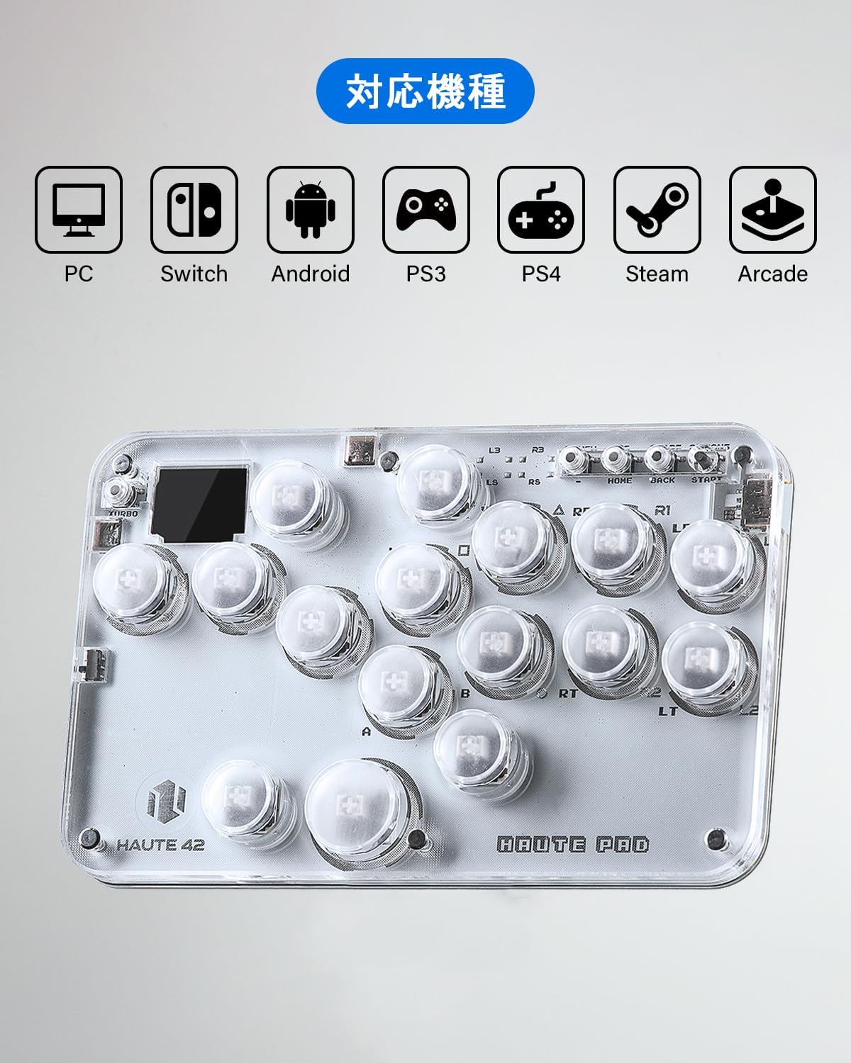 2、【ご注意&超低1ms遅延】 For PS4/PS5本体の接続については、公式サイトまたはマニュアルを参照して設定する必要がありますので、必ず日本語取扱説明書または公式サイトのリンク先(haute42.com/supports/)をよくお読みください。本製品はPS5本体でPS4ゲームをサポートしていますが、もしPS5ゲームを遊びたいなら、アケコン専用なコンバーターが要りますから、別途ご購入ください。M1とM2は同様の機能を持つ仕様、192.168.7.1のWebプラウザで、キー機能を変更出来ます。