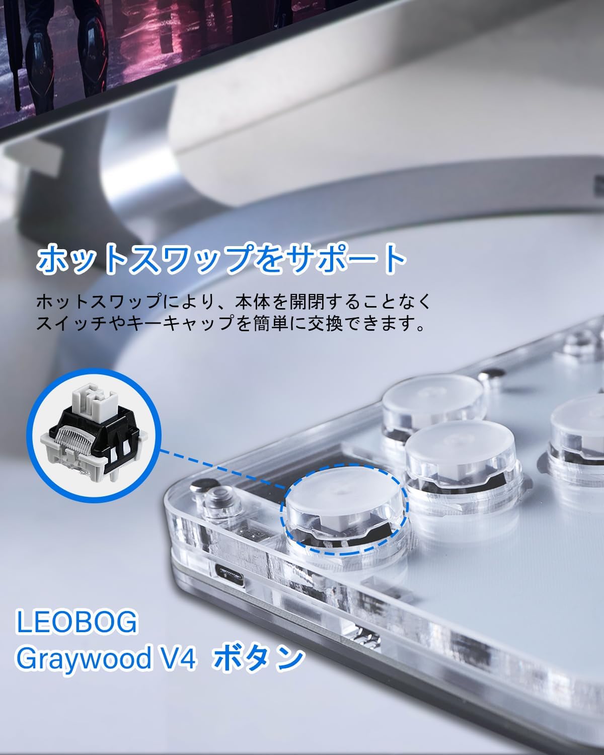 1.【16ボタン仕様のレバーレスアケコン】 従来のファイトスティックを超え、格闘ゲームにはすばやく操作できるレバーレスタイプがおすすめです。進化した高精度の4つの方向ボタンと高速オプティカルスイッチを備え、ゲームプレイ時の入力エラーを排除し、より早くより正確な操作を実現しました。つまり、ファイティングスティックより、レバーレスの最大の利点は、高速オプティカルスイッチと方向キーによる遅延やレスポンス度合いや精度はこちらの方が優れた優位に感じられます。また性能に優れ低遅延のRaspberry pi pico GP2040-CEを搭載しています。ボタンの軸がLEOBOG Graywood V4 長軸を採用し、S16よりも交換可能なボタンの使用範囲が広がります。対応機種:Windows 10以降/ Steam Deck/PS3/PS4/Switch/Raspberry Pi(Lakka、RetroPie、Recalbox、Batocera)/MiSTer/Android、Linux、iPadOS、macOS.