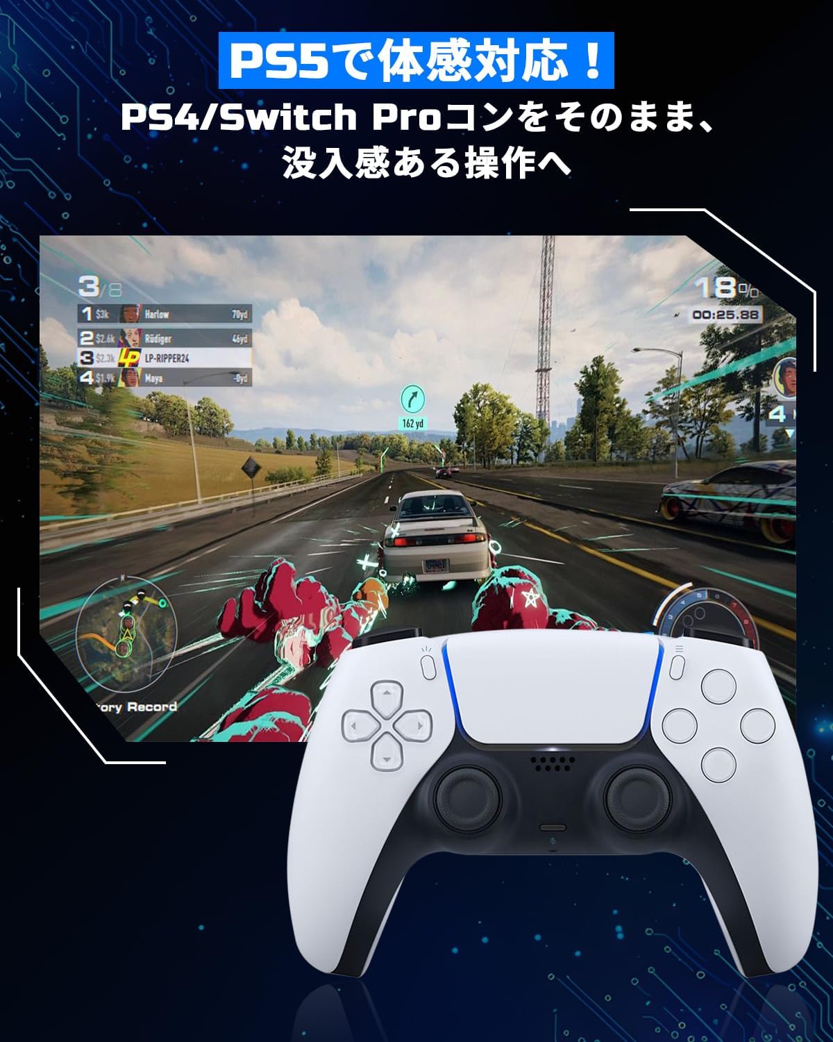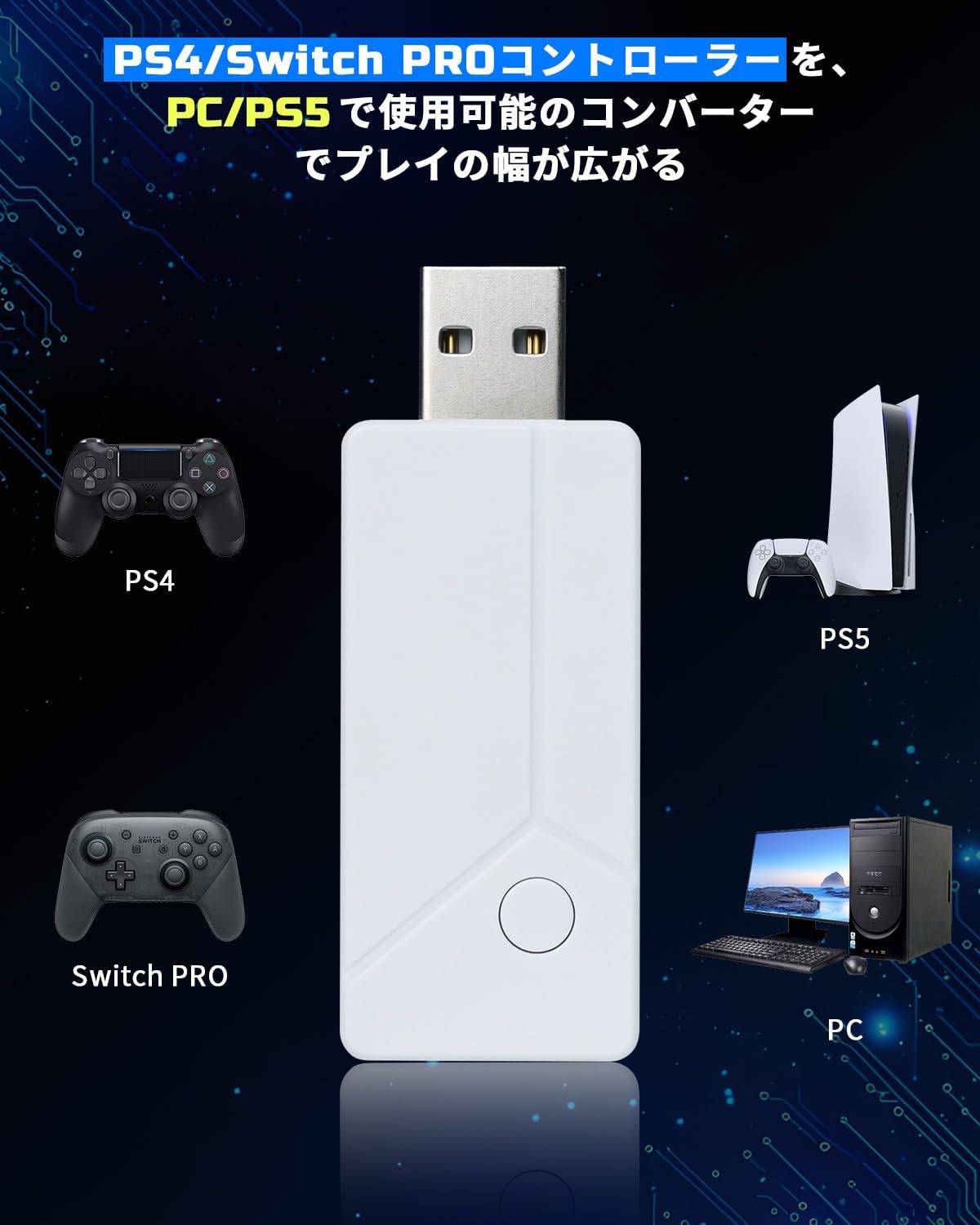 1.「多機種コントローラー対応&多機器接続可能」 PS4コントローラーやSwitch PROコントローラーを、PS5本体やPCで直接使用可能にするコンバーターです。