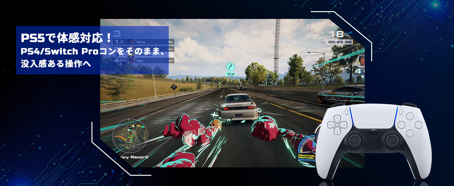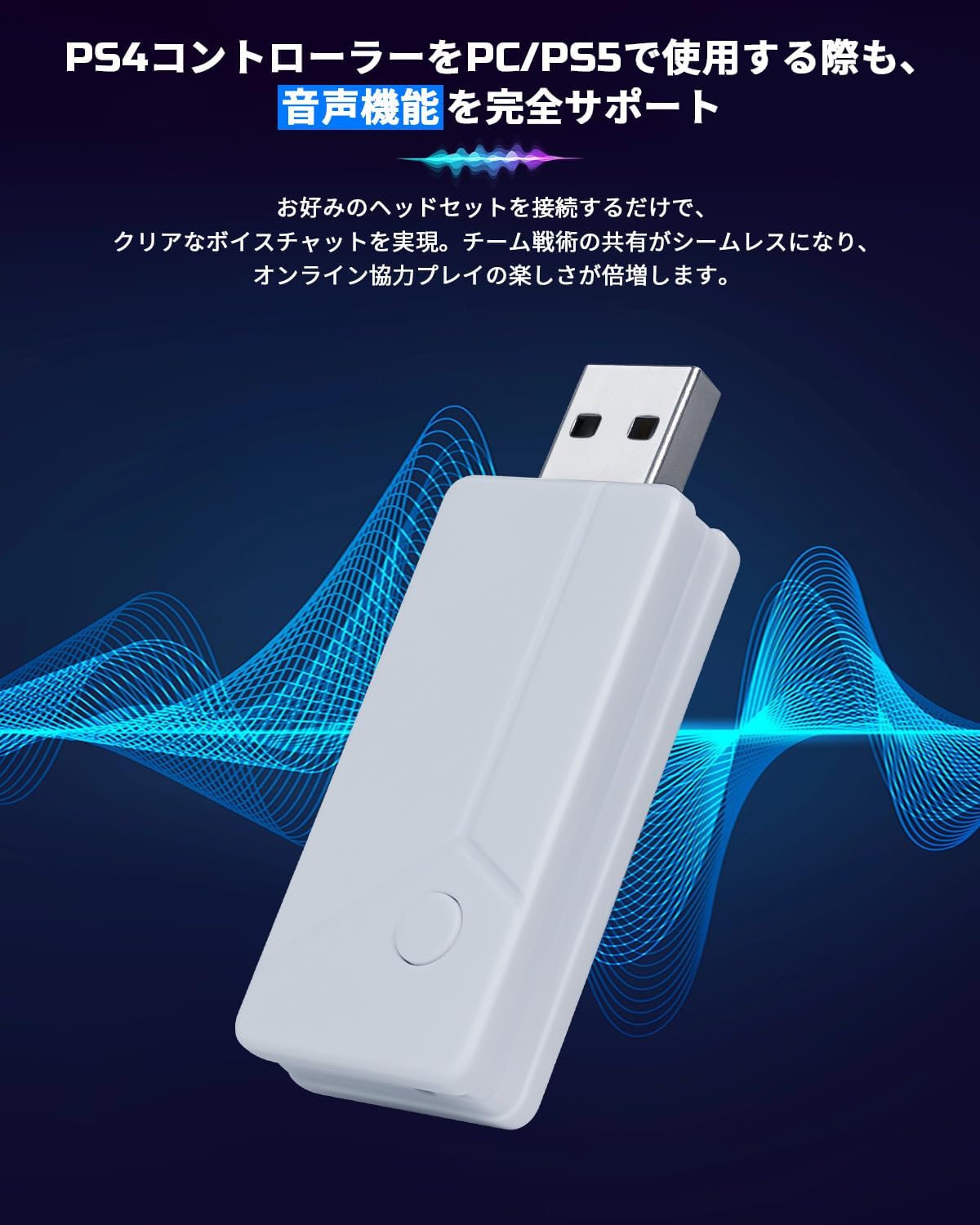 2、「フル機能再現 本格的なゲーム体験を提供」 振動機能、6軸体感機能、タッチパッド機能を完全にサポート。PS4コントローラーを使用する場合、PC/PS5本体でのオーディオ機能も利用可能で、音楽やゲーム音声をコントローラーから直接出力でき、没入感あふれるゲーム体験を実現します。