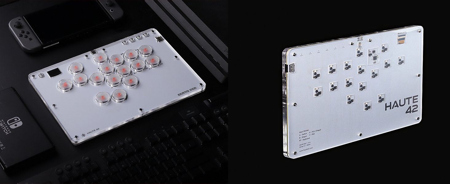 2、【ご注意&超低1ms遅延】 For PS4/PS5本体の接続については、公式サイトまたはマニュアルを参照して設定する必要がありますので、必ず日本語取扱説明書または公式サイトのリンク先(haute42.com/supports/)をよくお読みください。本製品はPS5本体でPS4ゲームをサポートしていますが、もしPS5ゲームを遊びたいなら、アケコン専用なコンバーターが要りますから、別途で、ご購入していただけます。ボタンはホットスワップ対応、本体の開閉が不要で、易くスイッチやキーキャップをカスタマイズ可能なので、スイッチの摩耗を気にしなくていいです。もし、キーキャップがいきなり取れる、自然磨耗の場合は弊店までご連絡下さい、キーキャップの交換を無料で手配させていただきます。